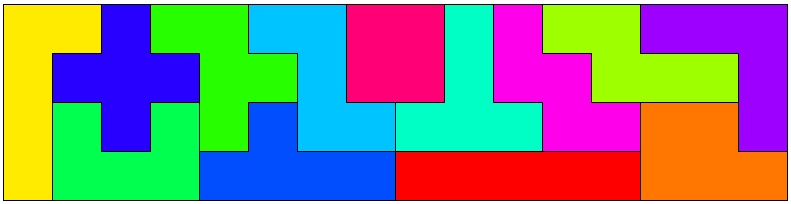 Die Pentominos sind eigentlich gutartige Spielsteine, viele Rechtecke lassen sich damit füllen. Wenn man noch ein 2x2-Quadrat hinzunimmt, lässt sich auch ein 8x8-Quadrat füllen. Auch das 4x16-Rechteck ist lösbar.